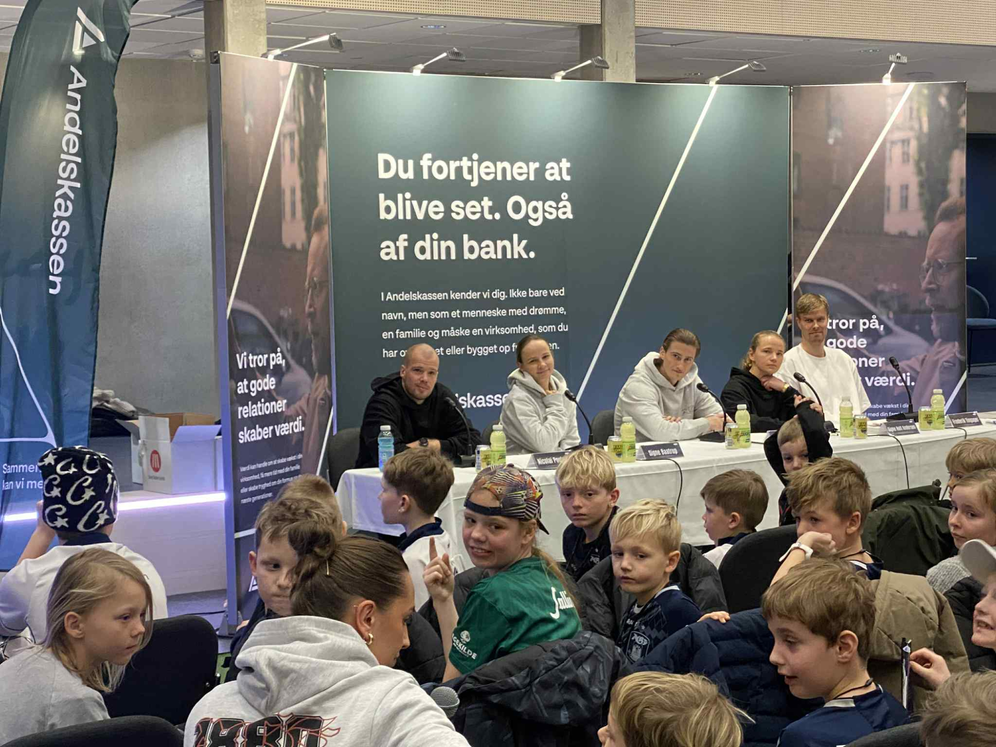 Om et af børnene en dag betræder græsset på Ceres Park i en hvid trøje, må tiden vise. Gå-på-mod manglede der i hvert fald ikke. En masse fornuftige spørgsmål blev stillet og børnene lyttede nysgerrigt efter, hvad deres idoler havde at sige.
