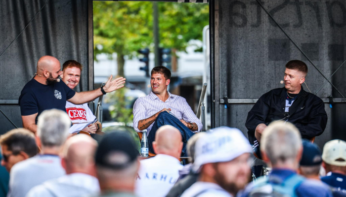 Du kan også booke podcastgutterne til liveevents. Panelet har blandt andet optrådt til AGF Gaden 2025 og med U$O på Panenka som optakt til en AGF-kamp.